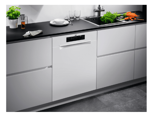Energibesparende vaskemaskine fra AEG med autosluk, udskudt start og plads til 13 kuverter. Læs hele beskrivelsen