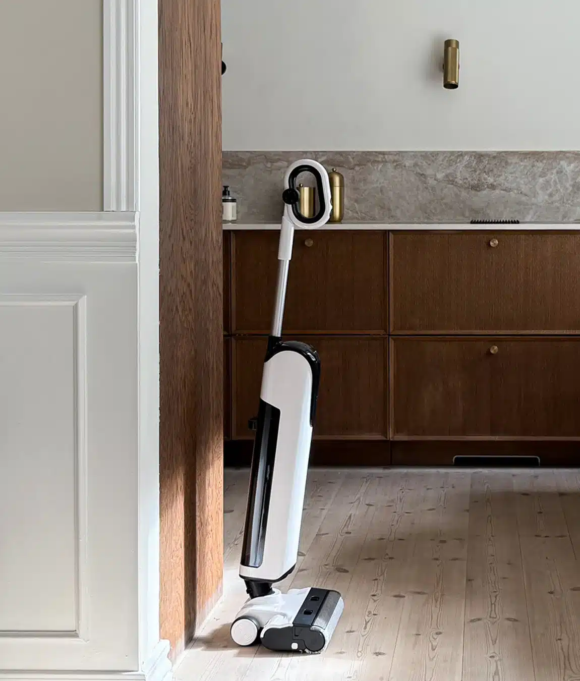 UWANT D100 kombinerer støvsugning og gulvvask i ét træk med separat rent/snavset vandtank. Selvrens og varm luft tørring i docking, klart LED-display og fleksibelt, fladt design for effektiv daglig gulvpleje. Læs hele beskrivelsen